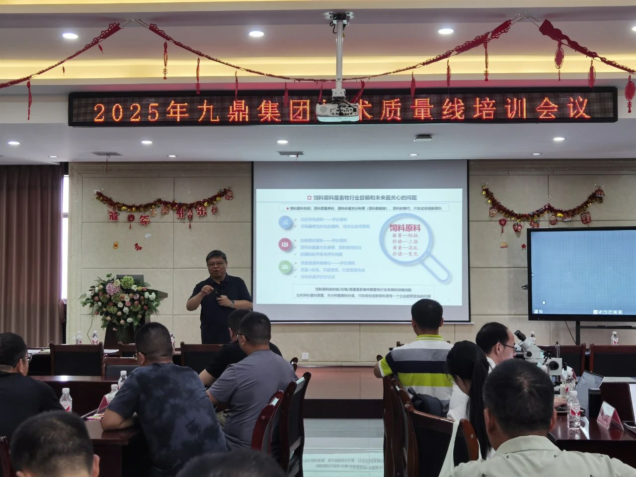 2025年7月22日至23日,九鼎集團(tuán)在岳陽(yáng)基地湖南農(nóng)牧成功組織召開技術(shù)質(zhì)量線專題培訓(xùn)會(huì)議。本次會(huì)議特邀飼料行業(yè)資深專家、青島蔚藍(lán)生物股份有限公司動(dòng)物營(yíng)養(yǎng)首席科學(xué)家郭吉原老師及其團(tuán)隊(duì)現(xiàn)場(chǎng)授課指導(dǎo),集團(tuán)技術(shù)、質(zhì)量、采購(gòu)三線近 80 名骨干人員齊聚一堂,共同參與這場(chǎng)聚焦質(zhì)量管理升級(jí)的專業(yè)培訓(xùn)。